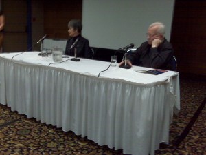Kerry: I like reading. I don’t find that I’m usually nervous, although I was for the initial book launch in April in Winnipeg this year, which was packed with nearly 100 people. I haven’t had any special training, such as theatre classes, but I like looking at the audience’s reaction when I catch their eye, and it’s interesting to see their response when I do.Tonight some of the people were even taking notes, probably Gerry’s students, but it’s great to see them engaged with the poetry.